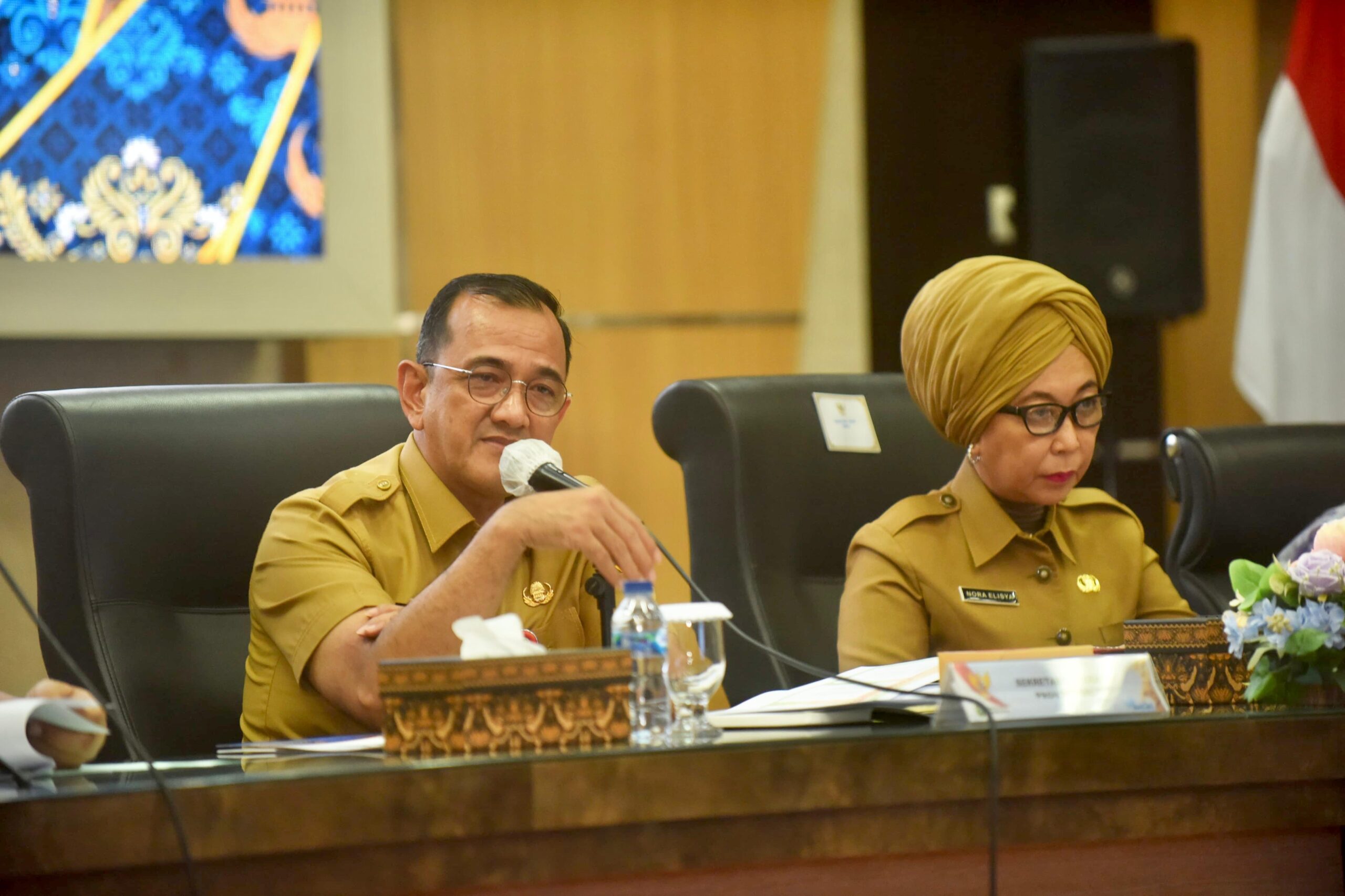 Sekretaris Daerah (Sekda) Sumsel, Edward Candra memimpin rapat koordinasi bersama kontingen dan manajer cabang olahraga (cabor) di Auditorium Graha Bina Praja, Selasa (2/9/2025).