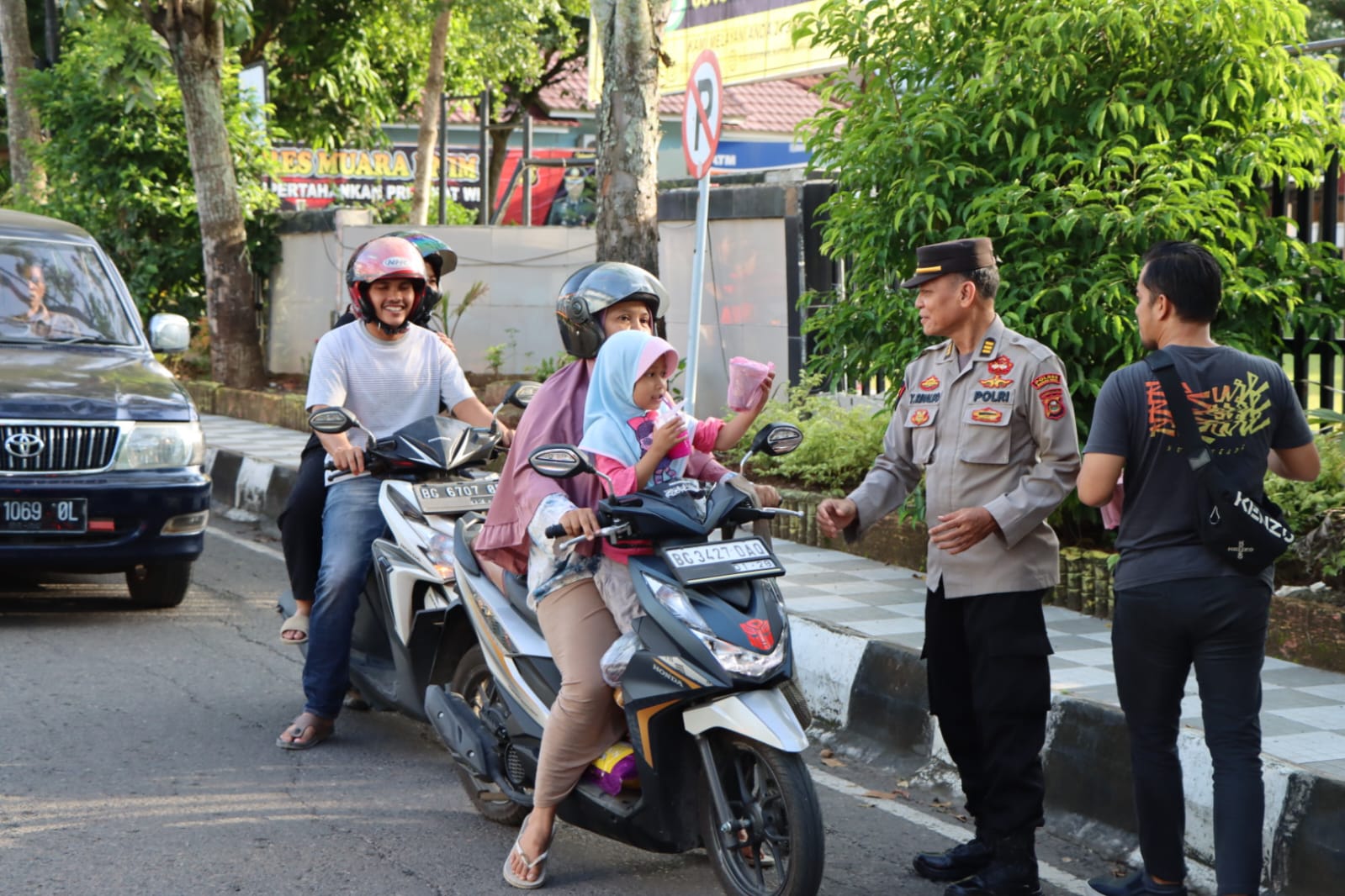 Polres Muara Enim melaksanakan bagi-bagi Takjil kepada warga masyarakat pengguna jalan yang masih berada dijalan raya, Sabtu (24/3/23) sore.