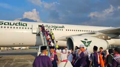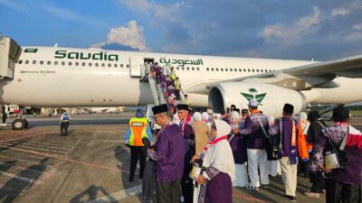 Sebanyak 370 jemaah haji Kloter 11 asal Ogan Ilir dan Palembang bertolak meninggalkan Bandara SMB II Palembang menuju Madinah, Rabu (15/05/2025) sore. Keberangkatan Kloter 11 menandai berakhirnya pemberangkatan jemaah haji gelombang pertama dari Embarkasi Palembang.