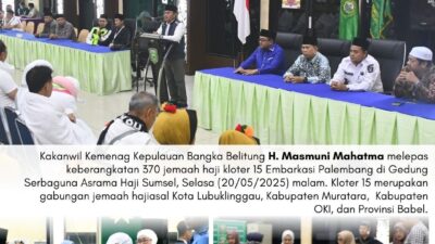 Sementara itu, Kakanwil Kemenag Babel H. Masmuni Mahatma saat melepas jemaah haji Kloter 16 Embarkasi Palembang mengingatkan jemaah untuk mematuhi arahan petugas dan tidak memisahkan diri dari rombongan. “Ingat Bapak/Ibu, kita berada di negeri orang. Agar tidak tersesat kami imbau untuk tetap bersama rombongan dan patuhi arahan petugas. Jangan sungkan untuk bertanya kepada petugas yang berada di Tanah Suci maupun petugas kloter yang mendampingi,” pesan Masmuni.