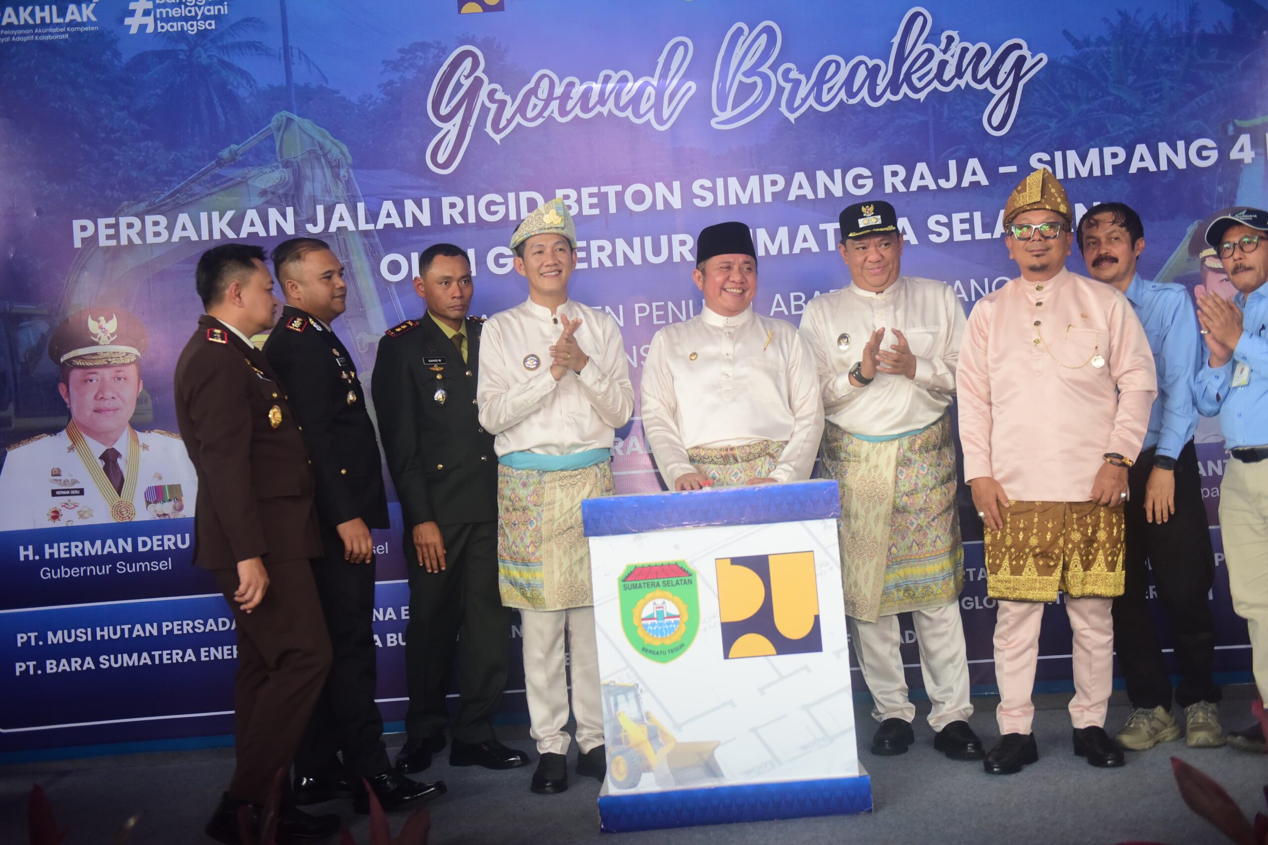 Gubernur Sumsel Herman Deru meresmikan ground breaking perbaikan jalan rigid beton ruas Simpang Raja–Simpang 4 PT MHP di Kabupaten Penukal Abab Lematang Ilir (PALI), Rabu (22/4/2026).