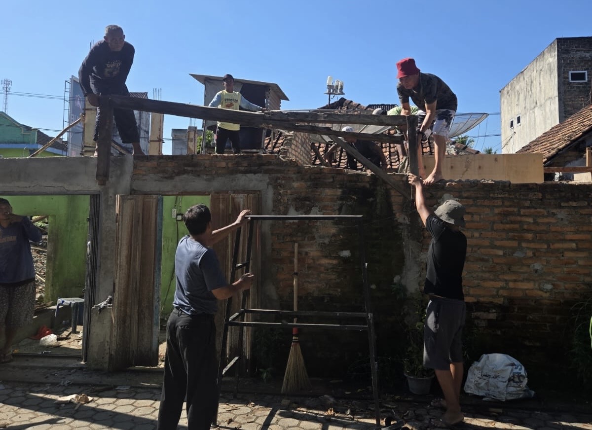 Dewan Kemakmuran Masjid (DKM) Nurul Hidayah Pemetung Basuki melaksanakan kegiatan bedah rumah milik salah satu warga, Edy Paisol (Edy Gama), Minggu (26/2026).