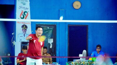 BABAT TOMAN — Bupati Musi Banyuasin, M Toha Tohet, membuka Turnamen Badminton Open PB B-29…